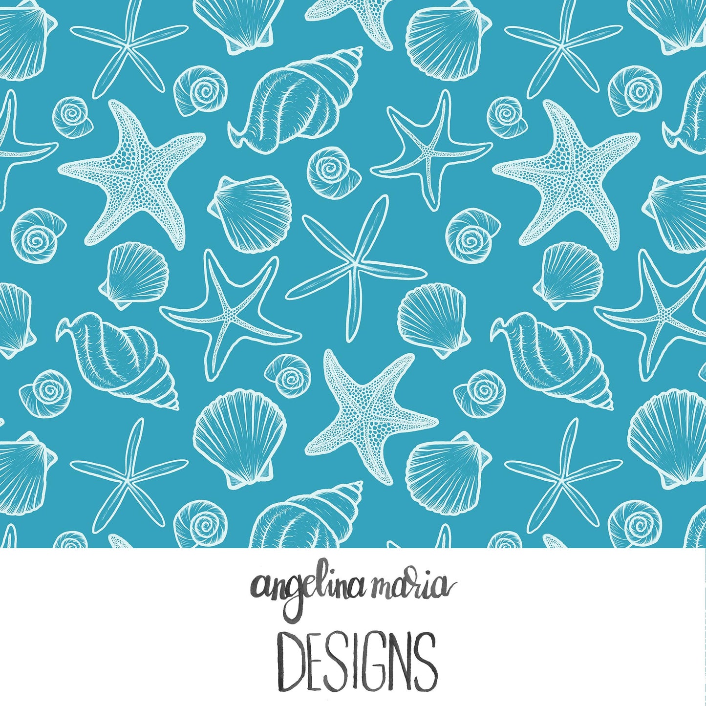Mermaid Magic Seashells and Starfish Teal AMD311